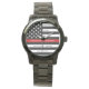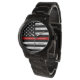 Celebrate and show your appreciation to an outstanding Firefighter with this Thin Red Line Retirement or Anniversary Firefighter Watch - American flag design in Firefighter Flag colours in a modern black an red design .