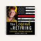 This design features a firemens flag with black and white stripes, and a thin red line stripe as well. "The Legend is Retiring" text sits above the name of the retiring firefighter, lieutenant, or chief. Celebrate in style! Customise even further with a photo of the retiring firefighter.