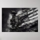 Honor the courage and sacrifice of America’s first responders with this powerful firefighter wall art poster. Featuring a detailed firefighter in turnout gear holding an axe, set against an American flag materializing and emanating from behind him in smokey, ink-like, cinematic artist effects. This black and white artwork makes a bold statement of pride, strength, and service.