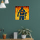This poster features a striking illustration of a firefighter standing resolutely before towering flames.