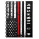 A custom name distressed style firefighter styled American flag note book.  The thin red line running across the centre is representative of firefighter professionals.  Follow the directions in the sidebar to add your name and to have it look perfect underneath the flag.