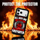 A firefighter proudly displays a unique t-shirt emphasising equality and the special role of firefighters. The vibrant design includes striking colours and bold text, creating an inspiring message against a neutral backdrop.