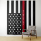 This tapestry which may be used as a photo backdrop for special occasions such as firefighter retirement or birthday parties, features a black and white firefighter thin red line American flag along with an officer's name for you to personalise. Designed by world renowned artist ©Tim Coffey.