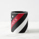 This firefighter thin red line coffee mug features a black and white American flag with black and white stars and stripes and a thin red line with a monogrammed name in white typography. Perfect gift for firemen for any occasion. Designed by world renowned artist ©Tim Coffey.