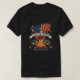 This custom t shirt features Two firefighters work together to extinguish a car fire, with an American flag in the background. symbolising bravery and heroism,