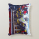 The cushion is small to medium sized. It can be washed. It is well constructed. The material used is pleasant and feels decent quality. It has a very slight plush feel which is good. It is well labelled and its care clearly stated. Theres nothing not to like about it. All in all a good item. The deduction of one star overall is due to long delays in delivery to the UK. It's not clear if this was due to Zazzle or somewhere else in the chain as I did not receive status updates of dispatch or progress. I cannot comment anymore on that other than to say that was our experience but it may not be the same for you. The printing was surprisingly close to what we were expecting. Its an art piece and on material so its hard to assess the precision of printing but it seems close to the original. The soft lines are reproductions of the original. The colour is a fair reflection of the painting. This was printed in the US and it looks like US quality. No issues.