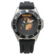 Has heft and feel of expensive stainless steel quartz wrist watches. Solid construction and good looks. Although it had a really top quality rubber strap, I substituted a stainless steel "Shark" style mesh strap, which I think is the most comfortable strap available. Perfect. True colors of original image. Clear, crisp image precisely aligned and spaced.