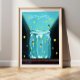 Decorate your home with this painting print of fireflies illuminating a glass jar at night! The art print has the Bible verse from John 1:5.