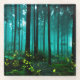 This photo features a view of fireflies above the forest floor.