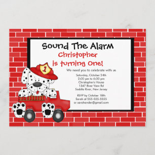 Dalmatian Fireman Fire Truck Birthday Party Invitation