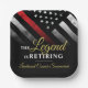 This design features a firemens flag with black and white stripes, and a thin red line stripe as well. "The Legend is Retiring" text sits above the name of the retiring law enforcement firefighter, lieutenant, or chief. Celebrate in style!