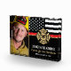 This design features a firemen's flag with black and white stripes, and a thin red line stripe as well. "Congratulations" and a fireman's badge sits above the name of the graduating or retiring firefighter, lieutenant, or chief. Celebrate in style! Customise even further with a photo of the retiring firefighter.