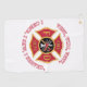 THIS TOWEL IS DECORATED WITH THE FIREFIGHTERS CROSS AND THE WORDS VENI VIDI VETI I CAME I SAW I SERVED.