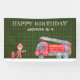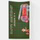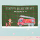 A cute red firetruck Birthday banner is the perfect birthday decoration theme for a firefighter birthday party. It features your child's custom name and age. You can edit all of the text. This one has a christmas theme with a traditional checker tartan plaid in green and red.