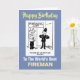 Policeman envious of a Fireman who has a private lift to use. A birthday card for the world's best Fireman! Greetings card for a firefighter on his birthday.