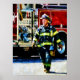 Are you looking for a gift for a fire fighter? This design of a fireman standing by his fire truck would be a perfect choice and make a great gift.