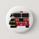 Adorably Cute Firefighter and Fire Engine Button Badge.