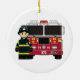Adorably Cute Firefighter and Fire Engine Ornament.