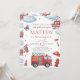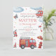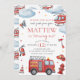 A fun firetruck-themed first birthday invitation featuring watercolor fire engines, helicopter, firefighter gear, hydrant, and bold red accents. Perfect for a little boy’s firefighter birthday party. Personalize with your child’s name, party details, and RSVP information. Ideal for fire station parties or rescue-themed celebrations. Printable and easy to share digitally.
