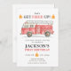 Firetruck Let's Get Fired Up Boy First Birthday Invitation