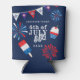 Patriotic Firework Fourth of July BBQ can cooler with dark blue background.