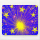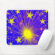 A firework exploding in a shower of dazzling gold and pink stars against a blue sky. Mousepad with a yellow, pink, blue and white customisable design for you to personalise with your own text, pictures and ideas. Created using original photographs and digital techniques by Jess Perry.