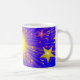A firework exploding in a shower of dazzling gold and pink stars against a blue sky. Mug with a yellow, pink, blue and white customisable design for you to personalise with your own text, pictures and ideas. Available in all style options. Created using original photographs and digital techniques by Jess Perry.