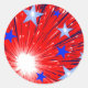 A firework exploding in a shower of dazzling blue and white stars against a red and blue sky. Sticker with a red, blue and white customisable design for you to personalise with your own text, pictures and ideas. Created using original photographs and digital techniques by Jess Perry.