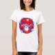A firework exploding in a shower of dazzling blue and white stars against a blue sky. T-shirt with a red, blue and white customisable design for you to personalise with your own text, pictures and ideas. The text can easily be changed using the template provided or click the 'Customise It' button to make further alterations. Created using original photographs and digital techniques by Jess Perry.