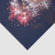 Fireworks 4th of July craft decoupage tissue paper. 'Happy 4th Of July' phrase. Be patriotic and celebrate America. Customise your text by hitting personalise button. Celebrate in style with this trendy modern gift wrap. Red white and blue colours. Image copyright Marg Seregelyi Photography.