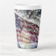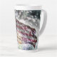 Fireworks bursting, in explosive flares, highlighting this symbol, of a waving, American flag, displaying, colourful sprays of; red, white, blue, grey, silver, yellow, green, and purple-against a twilight, sky.