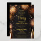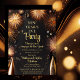 Modern and elegant fireworks, party hats and confetti black and faux gold with real gold foil text "New Year's Eve Party" design.