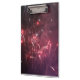 A clip board featuring two explosive photos of fireworks.