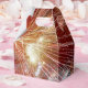 A brilliant white, pink & red incandescent flash from a Independence Day 4th of July holiday fireworks show illuminates the jet black sky and makes for an exciting image.