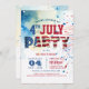 At the heart of the design lies the iconic American flag, seamlessly incorporated into the letters spelling out "party." This subtle yet impactful detail pays homage to the spirit of freedom and unity that defines this special occasion. Whether you're hosting a backyard barbecue or a sophisticated soirée, our invitation sets the stage for an unforgettable Fourth of July celebration.