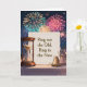 Fireworks in the background, an hourglass and bells in the foreground all combine to make a beautiful and elegant New Year card.