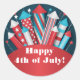 The best way to celebrate Independence Day is through a good party with good friends and family. Use these stickers at the party on party favours. The design of these stickers has the colours of red, white and blue and has the design of a firecracker cluster getting ready to take flight in the air. It's fun, patriotic and modern.