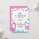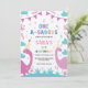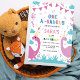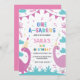 First 1st Birthday Dark & Light Pink Dinosaur Invitation