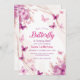 First 1st Birthday Purple Floral Butterflies Party Invitation