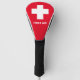 Golf Head Covers: First Aid golf equipment cover with a white cross design and text (easily customise). For your golfing events, doctors, nurses & medical support staff or funky design for players in need