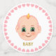 Elegant first baby birthday party table confetti framed with pink hearts. Cute baby face on white confetti. Text can be personalised.