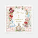 A cute personal age birthday greeting card featuring Alice in Wonderland elements and watercolor roses on a pink chequerboard background.
