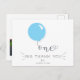 Designed to coordinate with the First Birthday Balloon Invitation, this blue balloon writes a sweet, simple thanks to your party guest. Customise the bottom greeting as well as the signature. The balloon colour is also available in red and pink. On the back of the postcard, customise with your return address for easy mailing. Also add your favourite photo of the birthday boy or girl.