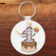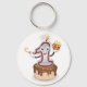 This design is a first birthday cake. The cake has a candle with a face on it. This first birthday cake design looks great on this Keychain