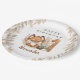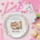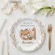 First Birthday Paper Plates with Cute little fox, Autumn Leaves, pampas grass and Pumpkins, for Fall, Autumn, 1st Birthday of baby boy. Easily personalise the text. - Kate Eden Art