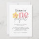 First birthday daisy floral modern bold typography boho retro pink, yellow girly quirky fun vintage One dermal wonderful birthday invitation and party collection.