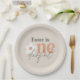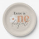 First birthday daisy floral modern bold typography boho retro terracotta, peach, natural quirky fun vintage Onederful wonderful birthday party paper plate decor party collection.