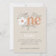 First birthday daisy floral modern bold typography boho retro terracotta, peach, natural quirky fun vintage Little Miss one derful, wonderful photo birthday invitation and party collection.