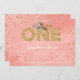 First Birthday, Gold Glitter Confetti, coral pink Invitation