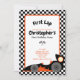 First Lap Birthday Invitation featuring a racing car and iconic chequered racing flags for any race loving child